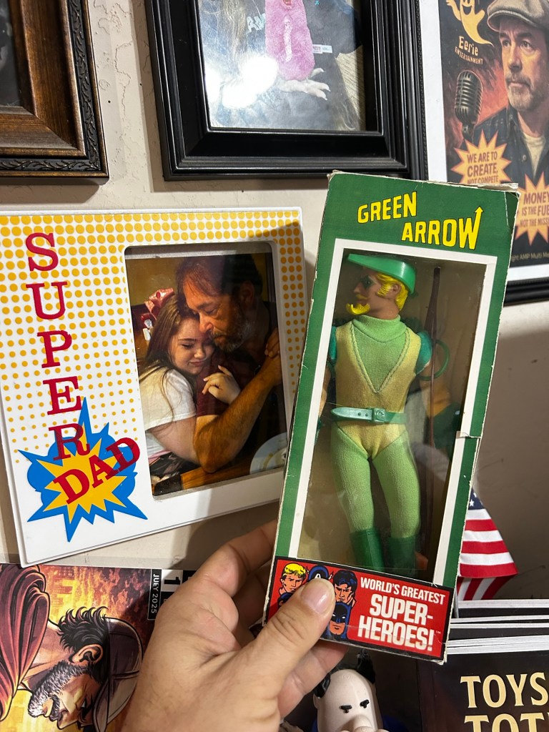 My wife surprised me with a vintage 8-inch Green Arrow figure in a reproduction box. Clean. Classic. Exactly the one I’d wanted for a long time.